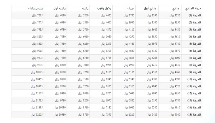 - الرقيب الأول: حيث يتقاضى الرقيب أول راتب بقيمة 14300 ريال، وذلك تقديراً لخبرته الطويلة وجهوده المبذولة في الإدارة.